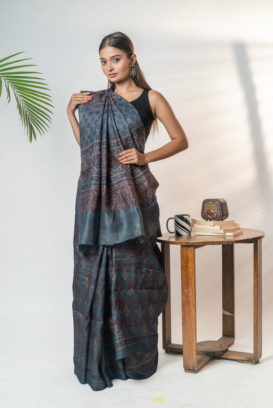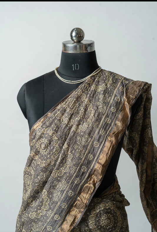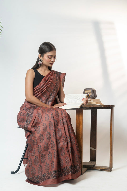 Ajrakh kosa saree